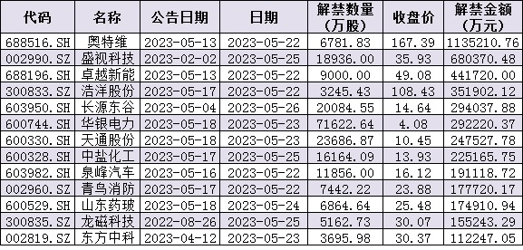 統(tǒng)計(jì)顯示,下周(5月22日-26日)共有69家公司限售股陸續(xù)解禁,按最新收盤價(jià)計(jì)算,解禁市值為543.62億元。從解禁市值來看,奧特維(113.52億元)、盛視科技(68.04億元)等公司解禁金額均超60億元。