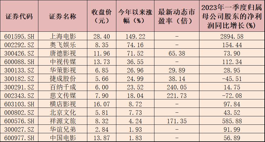 基本面的改善也促進股價的上漲。今年以來,截至5月25日收盤,影視院線板塊期間累計上漲11.82%,大幅跑贏同期上證指數(shù)(上漲3.63%),板塊內(nèi)22只個股中有13只個股期間實現(xiàn)上漲,占比近六成,其中,上海電影、奧飛娛樂、唐德影視、中視傳媒、華策影視期間累計漲幅居前五,均漲超26%。