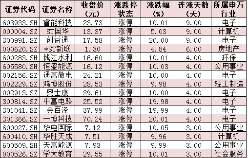 表:連續(xù)上漲3日且今日收盤漲停個股情況: