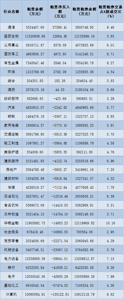表:6月2日申萬(wàn)一級(jí)行業(yè)兩融交易情況: