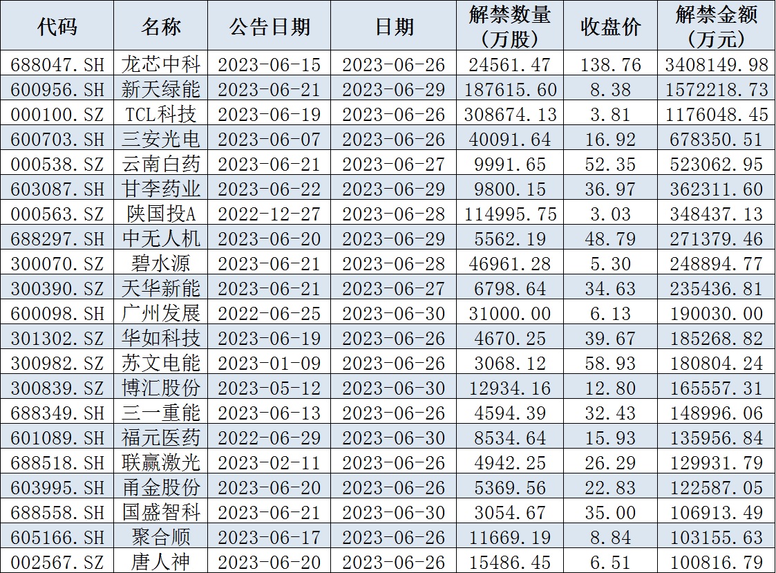 下周解禁市值逾500億元,哪些行業(yè)存在潛在機(jī)會(huì)?2023-06-18 21:13