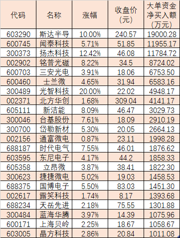 7月4日上午大單資金凈買入額超千萬元的第三代半導(dǎo)體概念股