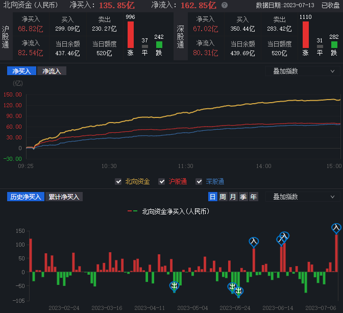 超百億元北向資金沖進A股 兩因素提升A股對外資吸引力2023-07-13 18:45