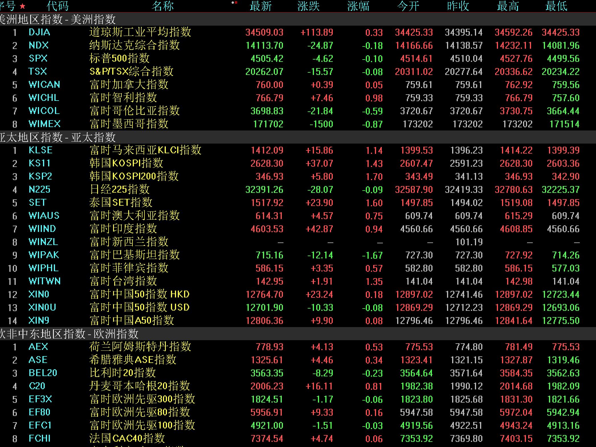 周五,美國三大股指收盤漲跌不一,道指漲0.33%報34509.03點,標(biāo)普500指數(shù)跌0.1%報4505.42點,納指跌0.18%報14113.7點。本周,道指漲2.29%,標(biāo)普500指數(shù)漲2.42%,納指漲3.32%。