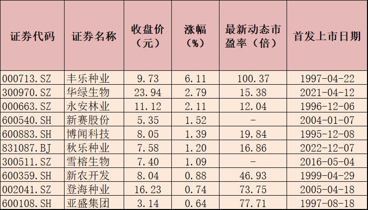 表:7月18日種植業(yè)與林業(yè)板塊內(nèi)漲幅居前十的個(gè)股一覽