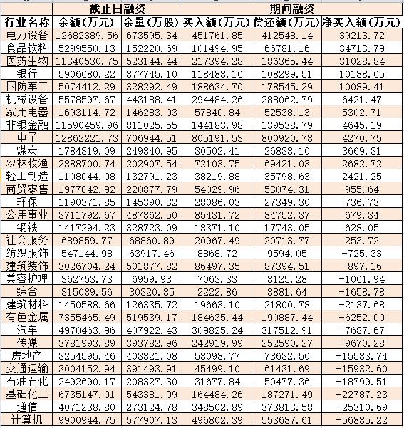 表:7月18日申萬一級行業(yè)兩融交易情況