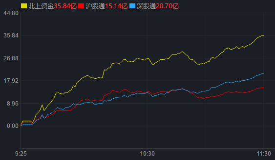 從資金面來看,7月27日上午,北上資金凈買入金額達(dá)35.84億元,其中,滬股通凈買入15.14億元,深股通凈買入20.70億元。