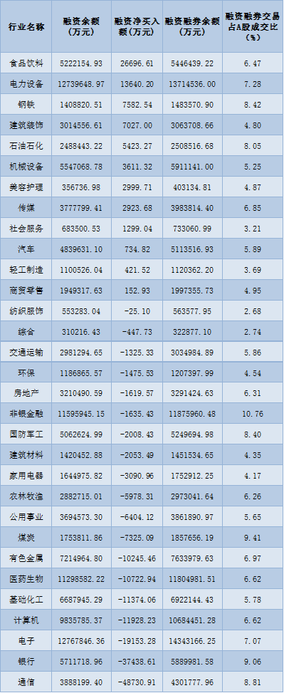 表:7月26日申萬一級行業(yè)兩融交易情況: