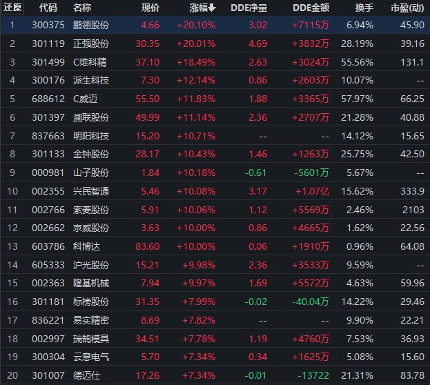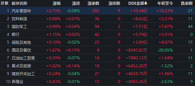從早盤表現(xiàn)強勢的汽車零部件行業(yè)看,交易中的226只成份股中有202只上漲,其中,有37只個股漲幅超5%。