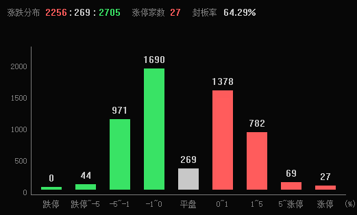 7月27日早盤,A股三大指數(shù)震蕩上揚。截至上午11:30,上證指數(shù)漲0.44%,報3237.13點,深證成指和創(chuàng)業(yè)板指漲幅分別為0.34%和0.49%;滬深兩市成交額合計4735.1億元。A股市場有2256只個股上漲,2705只下跌,漲跌停方面,有27只個股漲停,跌停股0只。