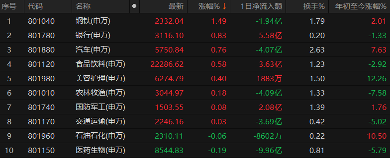 從31個(gè)申萬(wàn)一級(jí)行業(yè)看,7月27日,有8個(gè)上漲,占比25.81%,鋼鐵行業(yè)漲幅居首,達(dá)1.49%,大單資金凈流出1.94億元。下跌方面,電子居首,跌幅達(dá)1.48%,傳媒、通信、輕工制造和建筑裝飾行業(yè)跌幅也均超1%。