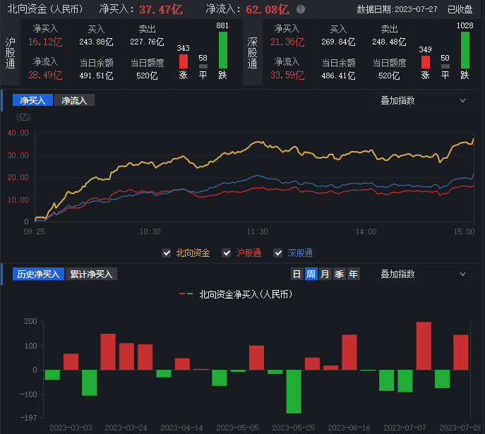 早盤三大指數(shù)震蕩回升,北向資金凈買入逾35億元!有專家稱股市上...2023-07-27 12:36