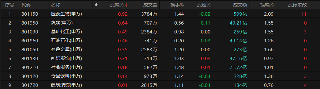 漲停股方面,今日有38只個股以漲停價報收,其中,有7只個股股價已連續(xù)上漲超過3個交易日;7只個股跌停報收。從申萬一級行業(yè)看,醫(yī)藥生物行業(yè)漲停股數(shù)量居首,達11只,機械設備和建筑裝飾的漲停股數(shù)均為4只。