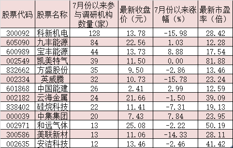 表示:7月份以來受到20家及以上機(jī)構(gòu)調(diào)研的氫能概念股