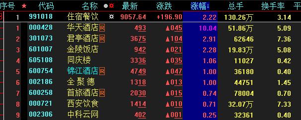具體看,截至8月14日上午收盤(pán),住宿餐飲板塊逆市飄紅,漲幅居首,達(dá)2.22%。其中,華天酒店漲停。