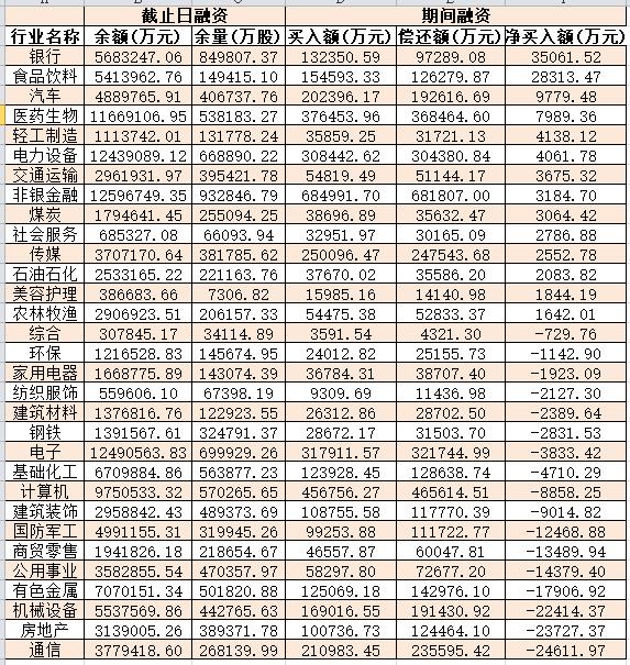 表:8月14日申萬(wàn)一級(jí)行業(yè)兩融交易情況