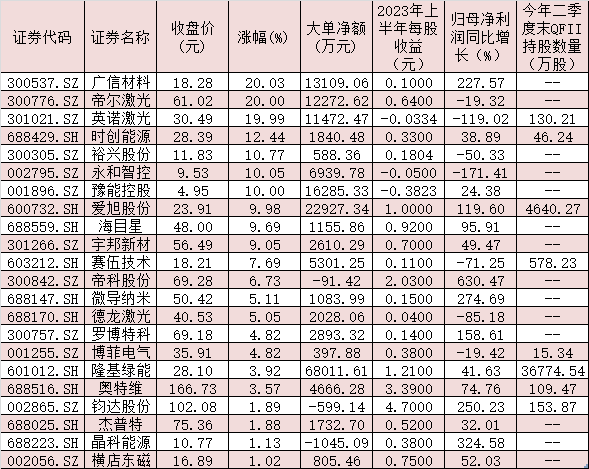 值得關(guān)注的是,以QFII(合格境外機(jī)構(gòu)投資者)為代表的外資也提前布局部分BC電池概念股。數(shù)據(jù)顯示,截至今年二季度末,有8家BC電池概念板塊上市公司的前十大流通股股東中出現(xiàn)QFII身影,以今年6月末收盤價計(jì)算,持股市值為125.85億元。具體來看,鈞達(dá)股份、英諾激光、奧特維、時創(chuàng)能源、博菲電氣等5家公司今年二季度獲QFII新進(jìn)持有;愛旭股份獲QFII繼續(xù)加倉,增持?jǐn)?shù)量達(dá)1385.65萬股;今年二季度QFII對隆基綠能、賽伍技術(shù)的持倉未變,持股數(shù)量分別為36774.54萬股、578.23萬股。