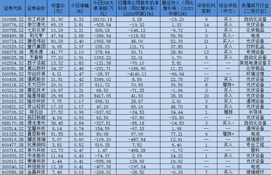表:9月11日,鈣鈦礦電池概念板塊實(shí)現(xiàn)上漲個(gè)股一覽