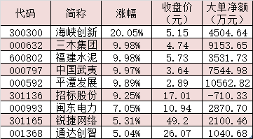 表:9月13日漲幅超5%的福建自貿(mào)區(qū)概念股