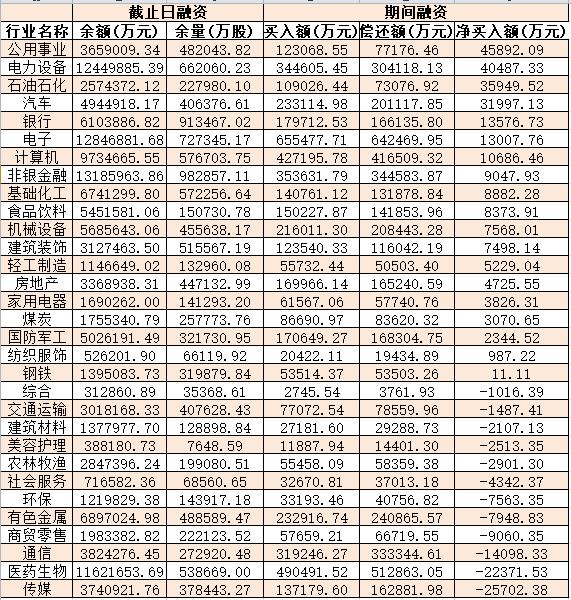 表:9月15日申萬一級行業(yè)兩融交易情況: