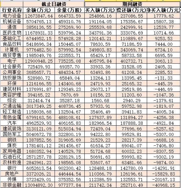 表:9月20日申萬一級行業(yè)兩融交易情況: