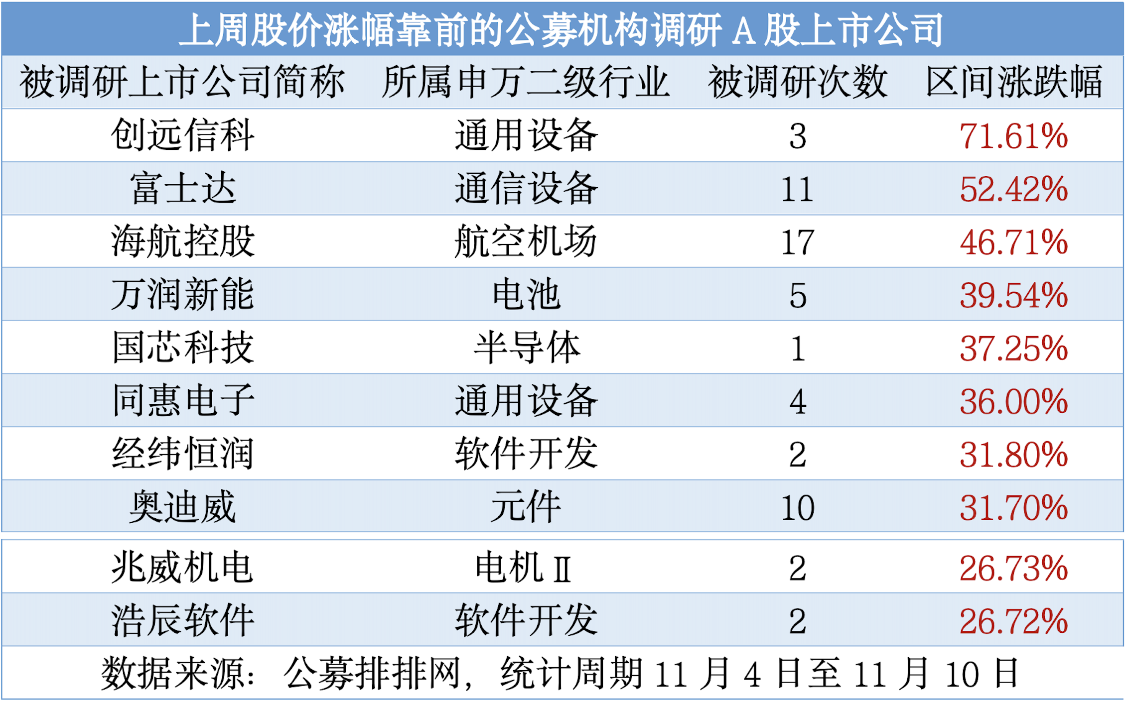 (上周調(diào)研次數(shù)排名靠前的公募機(jī)構(gòu))