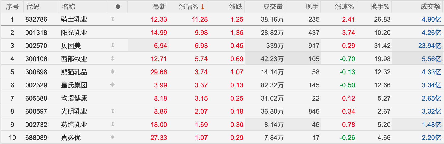 乳業(yè)板塊行情 數(shù)據(jù)來源:東方財富choice