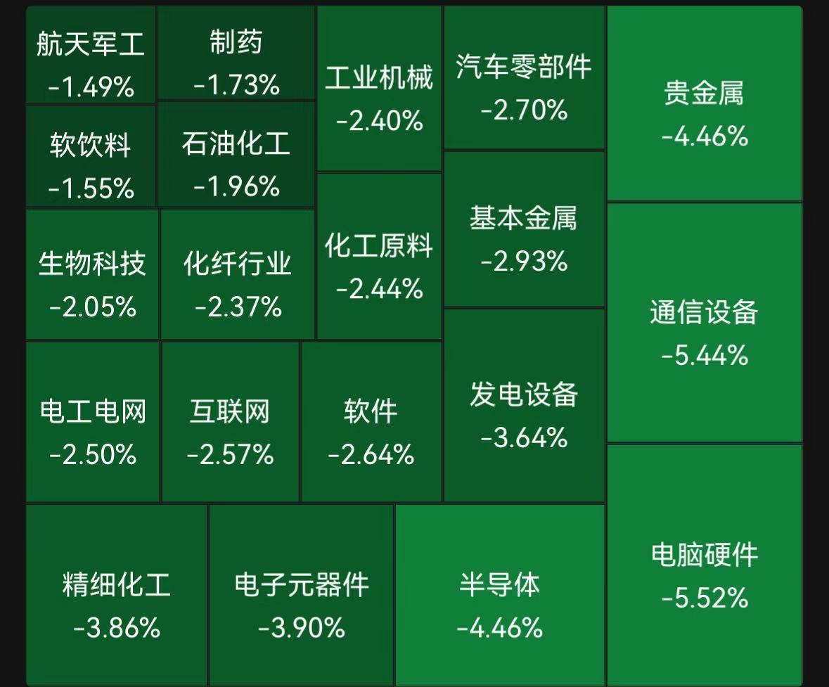 A股市場(chǎng)上,午后貴金屬、有色金屬個(gè)股應(yīng)聲下跌;截至當(dāng)日收盤(pán),wind貴金屬行業(yè)板塊下跌4.46%,基本金屬板塊收跌2.93%,其中盛達(dá)資源下跌8.39%、洛陽(yáng)鉬業(yè)、興業(yè)銀錫跌超7%、江西銅業(yè)下跌6.81%、紫金礦業(yè)下跌5.75%、四川黃金、赤峰黃金等多只個(gè)股跌超4%。