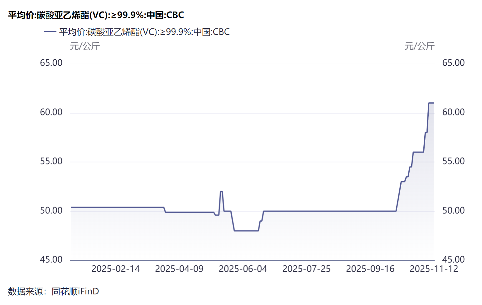 不止于此,電解液添加劑VC(碳酸亞乙烯酯)、FEC(氟代碳酸乙烯酯)由于價(jià)格持續(xù)上漲,也引發(fā)資本市場(chǎng)高度關(guān)注。