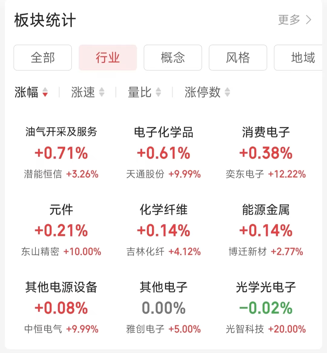 行業(yè)熱點方面,iFinD數(shù)據(jù)顯示,截至4月9日上午收盤,在同花順A股二級行業(yè)中,油氣開采及服務(wù)行業(yè)漲幅達(dá)到0.71%,位居榜首。電子化學(xué)品(漲幅0.61%)、消費電子(漲幅0.38%)、元件(漲幅0.21%)等行業(yè)緊隨其后。此外,化學(xué)纖維、能源金屬、其他電源設(shè)備等行業(yè)也錄得小幅上漲。
