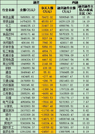 六、截至11月18日申萬級(jí)一級(jí)行業(yè)兩融交易情況