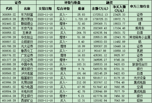 七、11月18日融資凈買入股TOP20