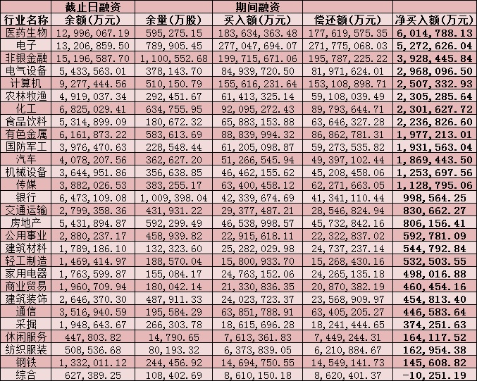 表:今年以來(lái)申萬(wàn)一級(jí)28個(gè)行業(yè)融資情況: