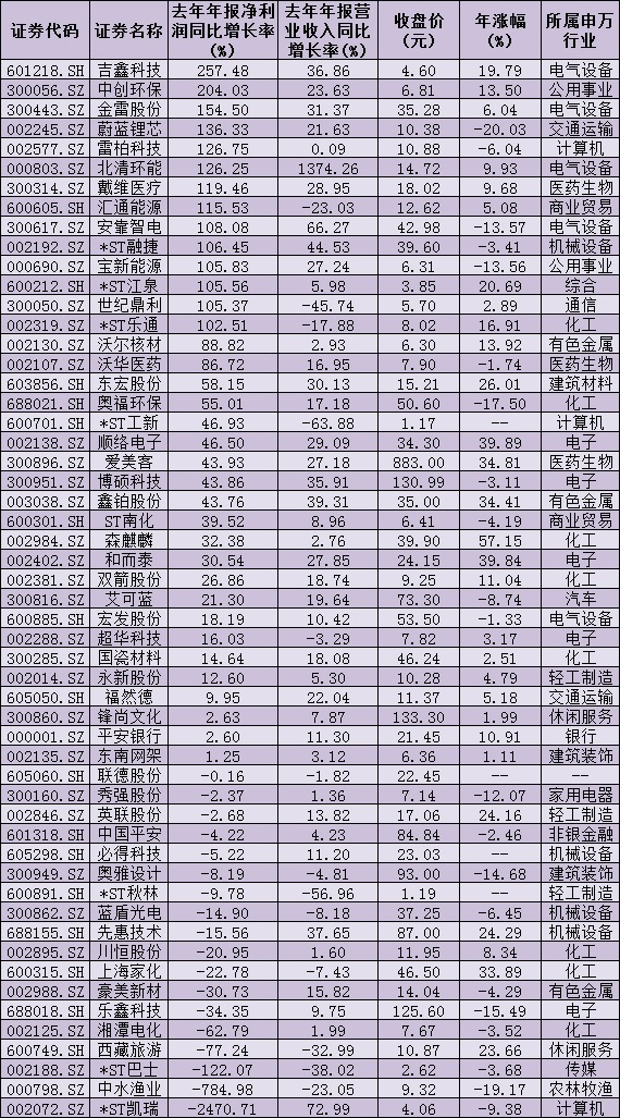 《證券日報》根據同花順統(tǒng)計發(fā)現(xiàn),截至3月1日收盤,滬深兩市已有54家公司披露了2020年年報業(yè)績。其中,36家公司歸屬母公司凈利潤實現(xiàn)同比增長,占比66.67%。其中,包括吉鑫科技、金雷股份、蔚藍鋰芯、雷柏科技、戴維醫(yī)療、安靠智電、寶新能源等在內的14家公司,年報凈利潤同比增幅均超100%。