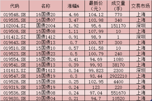 表:4月13日漲幅超0.2%的國債一覽