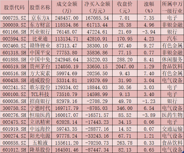 值得關(guān)注的是,周三,北向資金凈買入金額為57.31億元,連續(xù)3個(gè)交易日實(shí)現(xiàn)凈流入,其中,滬股通凈買入金額為15.41億元,深股通凈買入金額為41.9億元。