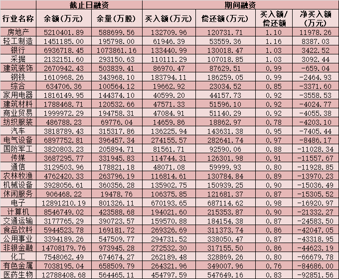 六、截至4月13日申萬級(jí)一級(jí)行業(yè)兩融交易情況