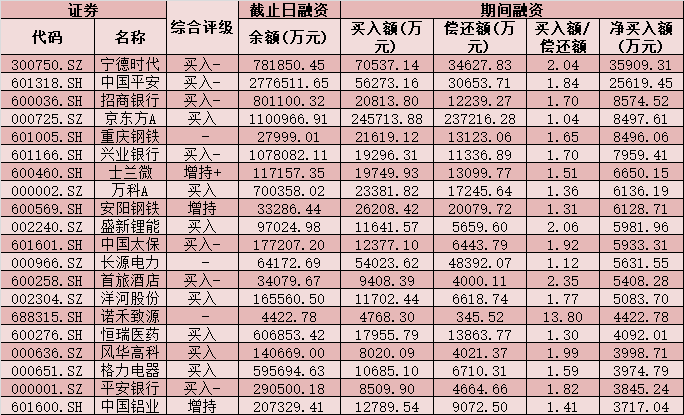 七、4月13日融資凈買入股TOP20