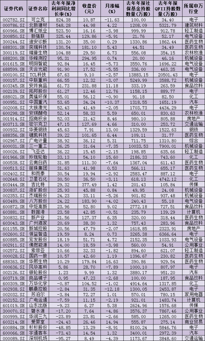統(tǒng)計(jì)發(fā)現(xiàn),上述59只個(gè)股中,有48家公司2020年年報(bào)實(shí)現(xiàn)凈利潤同比增長,占比達(dá)81.36%。其中,可立克、北新建材、博匯紙業(yè)、新強(qiáng)聯(lián)、迪安診斷、奕瑞科技、瑞普生物等7家公司凈利潤同比增長均超100%。