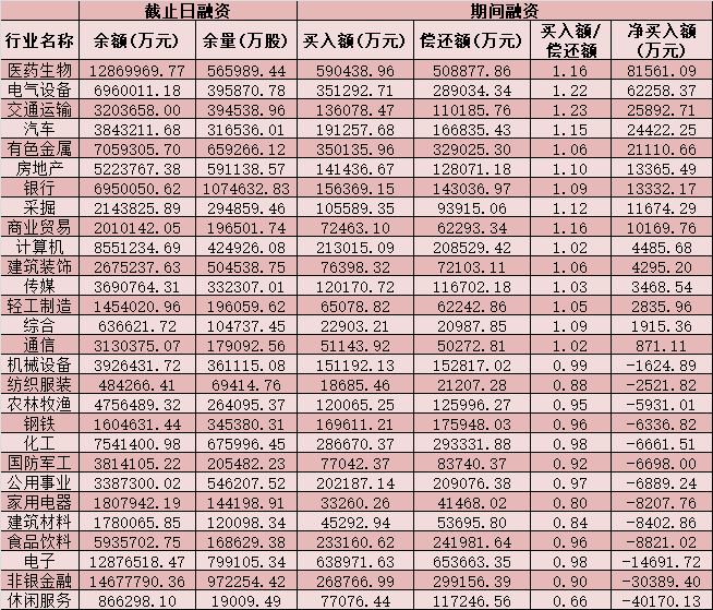 六、截至4月14日申萬級一級行業(yè)兩融交易情況