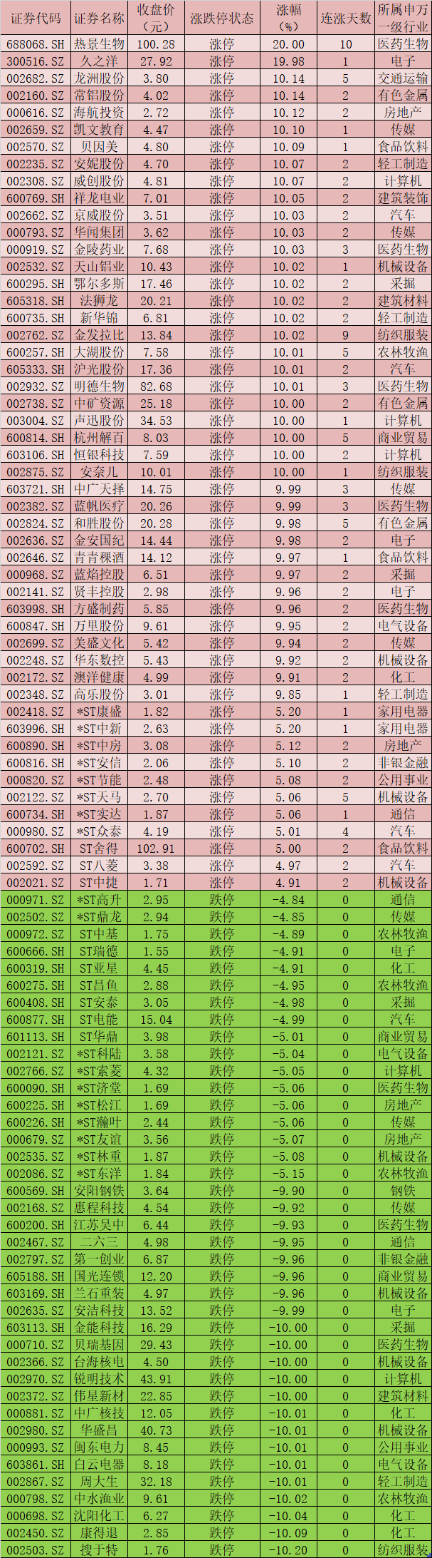 三、周四(4月15日)漲跌停股