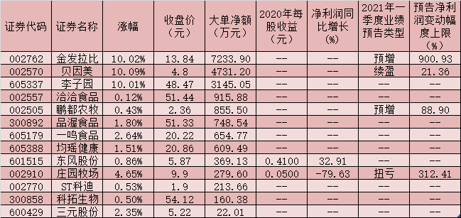 表:4月15日實(shí)現(xiàn)大單資金凈流入的乳業(yè)概念股一覽