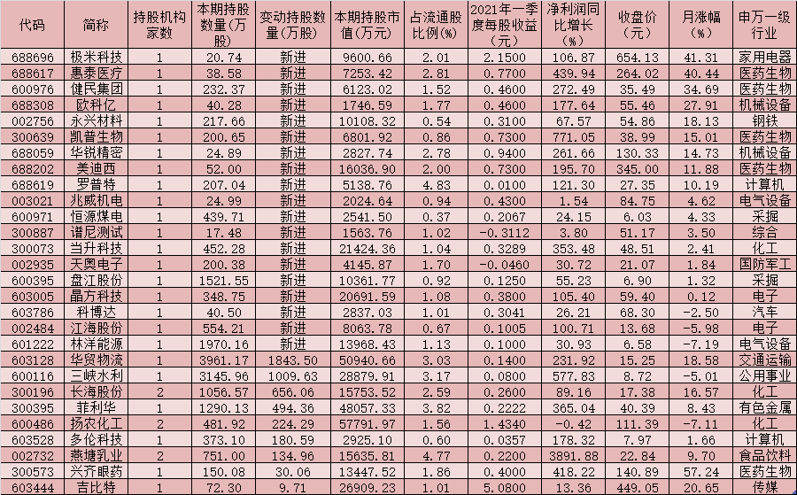 表:今年一季度獲養(yǎng)老金新進增持的個股一覽