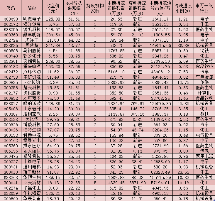 表:一季度獲QFII新進(jìn)增持且4月份以來漲幅超20%的個股一覽