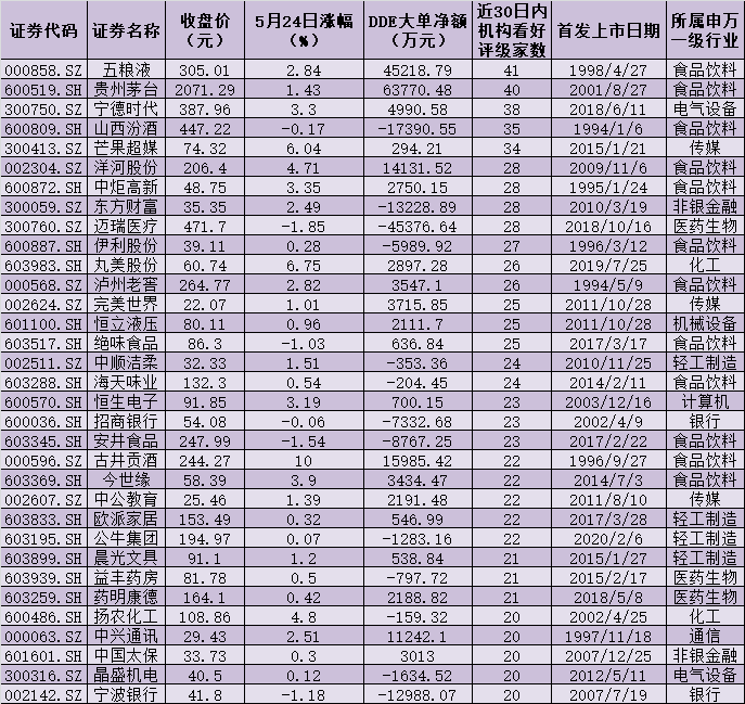 表:近30日內(nèi)機(jī)構(gòu)看好評(píng)級(jí)家數(shù)在20家及以上富時(shí)羅素概念股一覽