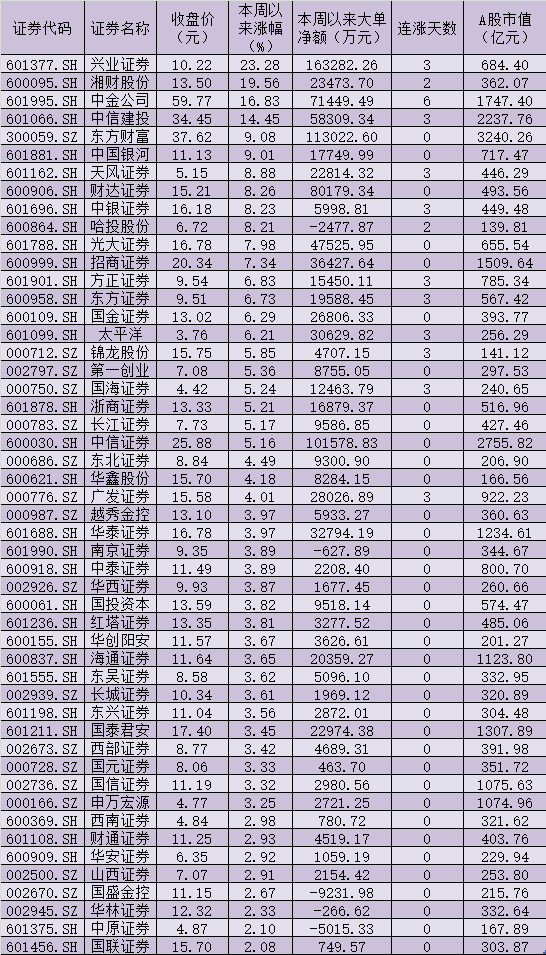 表:本周以來券商股市場表現一覽