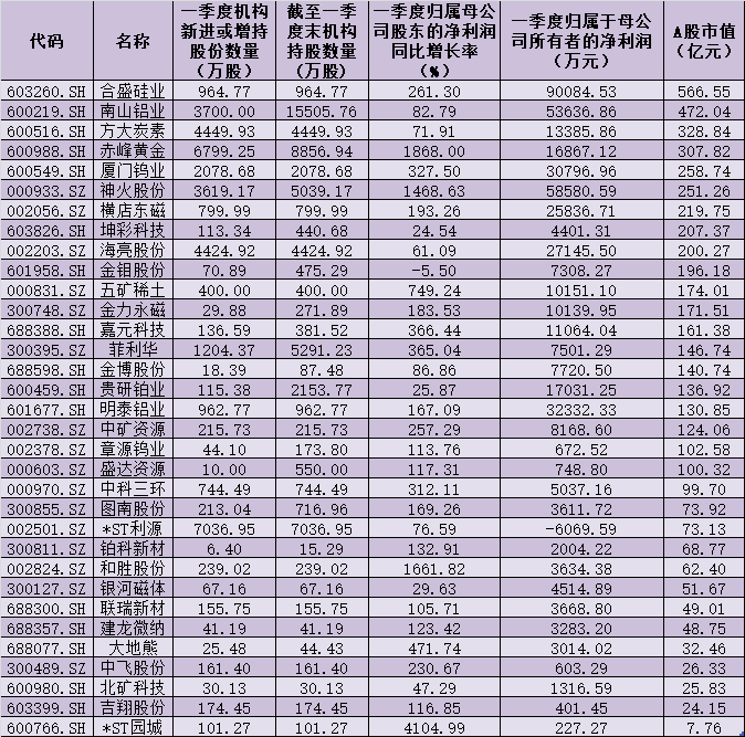 事實(shí)上,部分有色金屬股已經(jīng)得到機(jī)構(gòu)投資者的認(rèn)可。統(tǒng)計(jì)顯示,截至今年一季度末,有50只有色金屬股前十大流通股股東名單中出現(xiàn)包括社?;?、券商、險(xiǎn)資、QFII等機(jī)構(gòu)投資者身影,占行業(yè)內(nèi)成份公司比例為37.31%,合計(jì)持股市值約為170.20億元。其中,新進(jìn)增持公司家數(shù)達(dá)到33家。而這33家公司中,最新總市值在百億元以上的公司比例超過六成,合盛硅業(yè)、南山鋁業(yè)、方大炭素、赤峰黃金等公司最新總市值均在300億元以上。