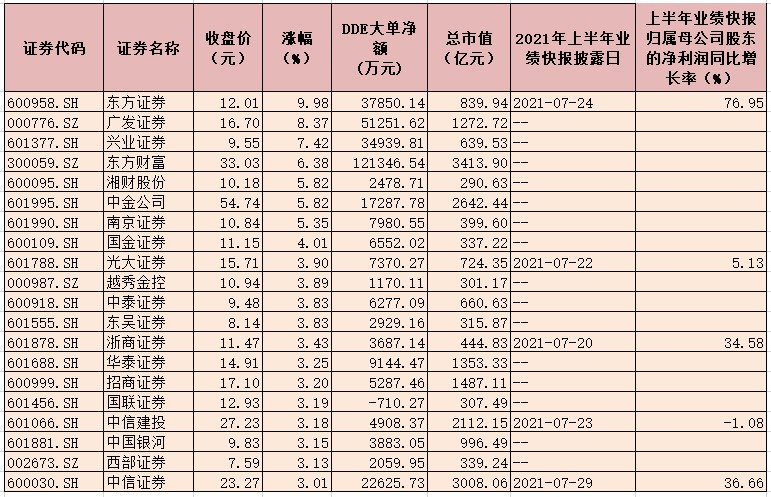 在經(jīng)過上周的回調(diào)后,8月2日,A股三大指數(shù)全天持續(xù)拉升,集體收漲超1%,市場投資熱情依舊火爆,滬深兩市合計(jì)成交額15128.33億元,突破了1.5萬億元,作為牛市“旗手”的證券板塊也走強(qiáng),截至收盤,證券行業(yè)(申萬二級(jí))指數(shù)漲3.87%,其中,東方證券強(qiáng)勢漲停,廣發(fā)證券(8.37%)、興業(yè)證券(7.42%)、東方財(cái)富(6.38%)漲幅居前,湘財(cái)股份、中金公司、南京證券等3只個(gè)股漲幅也均超5%。