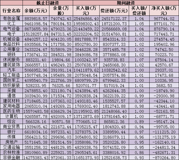 表:7月份以來申萬一級(jí)行業(yè)兩融情況: