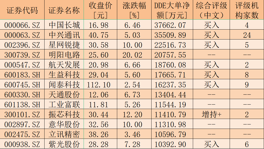 當(dāng)然,5G板塊的行情也與資金面因素相關(guān)。今日,5G板塊大單資金凈買入額為6.98億元,共有120只個股呈現(xiàn)大單資金凈買入狀態(tài),合計凈買入金額達(dá)到42.87億元。具體來看,中國長城(37662.07萬元)、中興通訊(35509.89萬元)、星網(wǎng)銳捷(22516.73萬元)、明陽電路(20757.55萬元)、航天發(fā)展(18760.08萬元)等13只個股獲大單資金凈買入額均超1億元;數(shù)碼視訊(9936.32萬元)、滬電股份(9222.81萬元)、東方通(8246.01萬元)、北斗星通(6719.04萬元)、華工科技(6675.64萬元)等51只個股獲大單資金凈買入額超1000萬元。